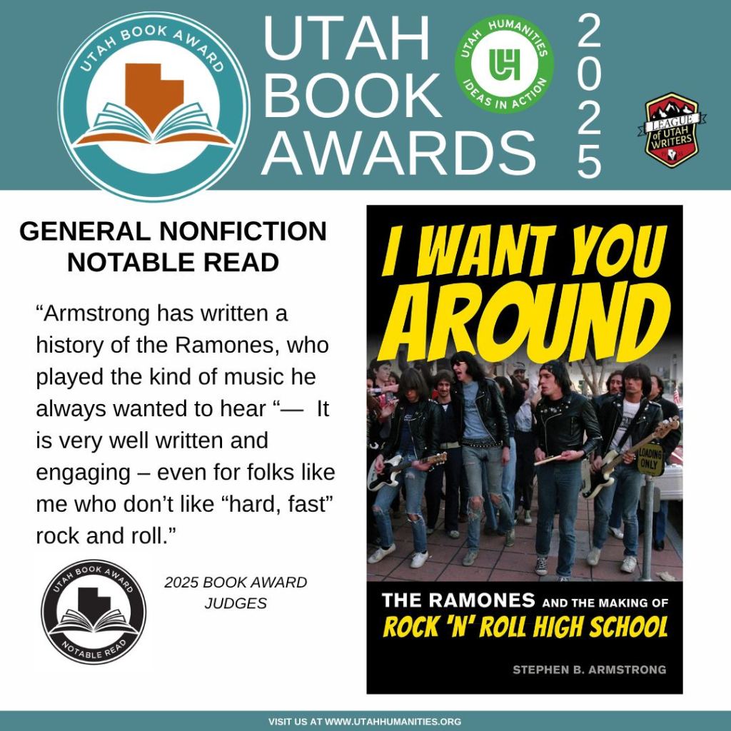 I Want You Around: The Ramones and The Making of Rock ‘n’ Roll High School, Finalist, 2025 Utah Book Awards. Winners announced July 15.